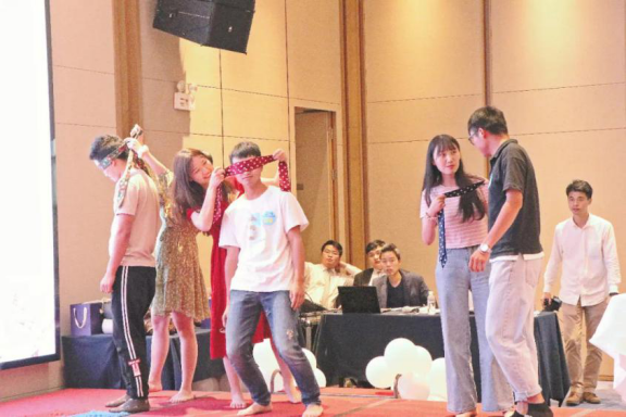 隨著活動開始,各位單身青年通過“擁抱另一個自己”、“愛會讓你長點(diǎn)心”環(huán)節(jié),青年積極主動的上場進(jìn)行了自我介紹,由男女主持人牽頭讓男生、女生分別說出心意對象的標(biāo)準(zhǔn),使大家加深了解。游戲環(huán)節(jié)由男女組隊搭檔,齊心協(xié)力共同完成游戲,休閑娛樂的同時進(jìn)一步促進(jìn)了大家的默契,在一片歡聲笑語中,互有好感的男女青年們相互交換了聯(lián)系方式。