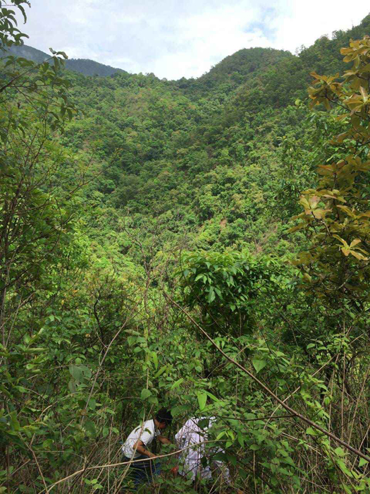 因?yàn)樯搅珠g有些地方雜草太密集,沒(méi)有足夠的空間揮刀砍開(kāi),大家就躺下,順著山勢(shì)滾下,用身體把草壓倒。很多時(shí)候,他們的胳膊會(huì)因此被雜草劃傷紅腫,“其實(shí)也沒(méi)什么,現(xiàn)在都已痊愈了,只要能痊愈,那就不是大事兒?!庇幸淮?,兩位項(xiàng)目管理員前往較遠(yuǎn)的導(dǎo)線點(diǎn),當(dāng)他們步行翻過(guò)兩座山后,目測(cè)點(diǎn)與點(diǎn)之間僅剩百余米的距離,但面對(duì)的卻是懸崖峭壁和隱藏的馬蜂窩……沒(méi)有路是事實(shí),但大家齊心協(xié)力勇往直前,辦法總比困難多。