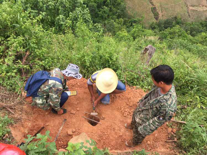 這里的項(xiàng)目管理員大都是年輕人,大家在一起相處也較為融洽。這段時(shí)間以來(lái),大家的工作基本上就是在山里每個(gè)導(dǎo)線點(diǎn)之間來(lái)回奔波勘測(cè),如此日復(fù)一日的重復(fù)著。然而大山中遍布著各種各樣的蚊蟲(chóng),每個(gè)人都有被蚊蟲(chóng)叮咬的經(jīng)歷。有被不知名的蟲(chóng)子咬過(guò)后,一只手掌麻痹失去感覺(jué)的;有遭遇馬蜂窩,沿著山坡滾下逃跑的;有每天在睡前,必須先清理滿床單的螞蟻的……工作之余,看一看山林里飛竄的野雞,吃幾個(gè)當(dāng)?shù)卮迕褓?zèng)送的芭蕉和青芒果。彼此間看著對(duì)方被烈日曬得黝黑的臉,笑著說(shuō)可以去參加健美比賽了,大家就這么互相開(kāi)一開(kāi)玩笑,在歡聲笑語(yǔ)中緩解整日的疲憊。