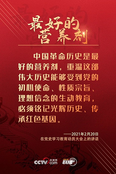 • 中國共產(chǎn)黨自1921年成立以來,已經(jīng)走過了100年的光輝歷程。在這100年里,黨領導人民不斷把革命、建設、改革、復興事業(yè)推向前進,奮力實現(xiàn)救國、興國、富國、強國的崇高使命。習近平總書記曾多次用生動形象的“妙喻”深刻闡述開展黨史學習教育的重大意義。央視網(wǎng)《聯(lián)播+》欄目與您一同回顧學習。