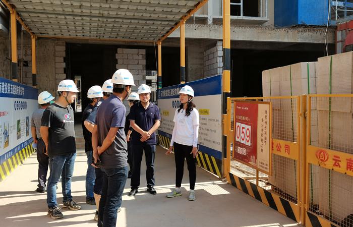 公司工會主席冷蕊帶隊,按照《云南建投集團企業(yè)形象識別系統(tǒng)管理手冊》統(tǒng)一規(guī)范,對元江高橋居住小區(qū)項目進行 “樹形象”專項檢查,進一步落實集團“四保一控一樹”管理要求,直七、安二、 五〇五參建單位的項目經(jīng)理及相關人員陪同檢查。檢查組一行分別對B、C區(qū)幾幢在建樓房的重難點、工程施工進展、安全質量管控等情況進行了了解,同時對施工現(xiàn)場的各種標識標牌的大小、位置、字體等情況進行了詳細檢查,隨后召開專項檢查會。