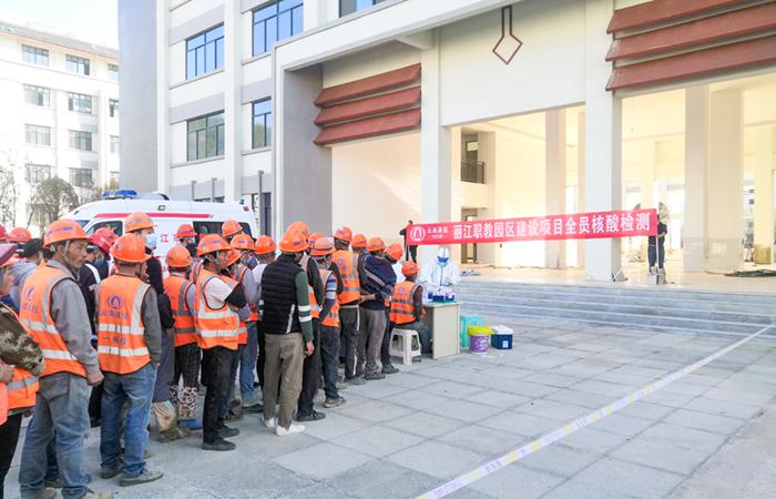 在此過程中,麗江職教園區(qū)項(xiàng)目部積極組織管理人員、在場(chǎng)施工工人和項(xiàng)目部后勤人員共251人進(jìn)行核酸采集,工人們井然有序地排隊(duì)配合醫(yī)護(hù)人員進(jìn)行核酸采集。