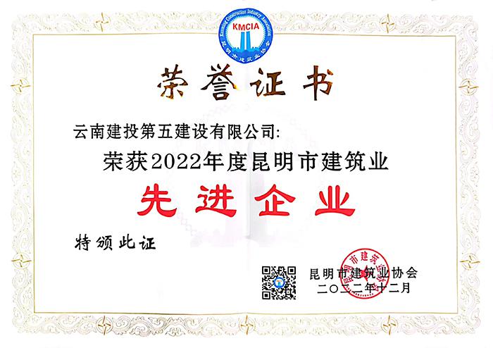 2022年12月8日,昆明市建筑業(yè)協(xié)會召開第八屆理事會換屆選舉會員大會,公司繼續(xù)當選為昆明市建筑業(yè)協(xié)會副會長單位,同時榮獲2022年度昆明市建筑業(yè)“先進企業(yè)”“質量管理優(yōu)秀企業(yè)”“質量管理小組活動優(yōu)秀企業(yè)”3項榮譽。