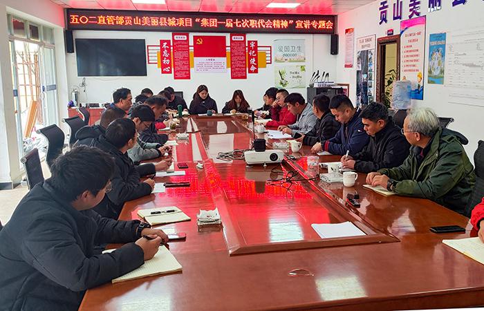 2月9日,五〇二直管項(xiàng)目部在貢山縣“美麗縣城”建設(shè)PPP項(xiàng)目組織學(xué)習(xí)宣貫集團(tuán)一屆七次職代會(huì)精神。