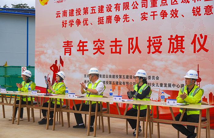 9月27日上午,公司在云南婦女兒童發(fā)展中心建設(shè)項(xiàng)目舉行重點(diǎn)區(qū)域和重點(diǎn)項(xiàng)目“好學(xué)爭(zhēng)優(yōu)、挺膺爭(zhēng)先、實(shí)干爭(zhēng)效、銳意爭(zhēng)新”青年突擊隊(duì)授旗儀式,集團(tuán)團(tuán)委書記、本部工會(huì)主席楊瑜,公司黨委書記、副董事長(zhǎng)蔣璽出席授旗儀式并講話。