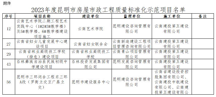 技術(shù)支持: 方森科技近日,昆明市住房和城鄉(xiāng)建設(shè)局公布了《關(guān)于表揚(yáng)2023年度昆明市房屋市政工程質(zhì)量標(biāo)準(zhǔn)化示范項(xiàng)目的通報(bào)》,公司多個項(xiàng)目獲獎。