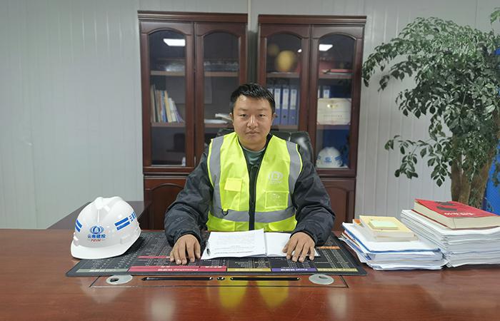 我們乘坐的車輛從學校東門駛?cè)?,李林澤與崗亭保安揮手致意,對方立刻放行,想來彼此已經(jīng)非常熟絡(luò)。來到項目部門口,我立刻被這潔凈美觀的小院所吸引:地面一塵不染,車輛停放整齊;花壇里的粉色月季競相綻放,環(huán)繞項目部的草地生氣勃勃,顯出與初冬季節(jié)相悖的濃濃翠意;L形的兩棟二層活動板房上分別張貼著“傳承發(fā)揚敬業(yè)、專注、精益、創(chuàng)新的工匠精神,執(zhí)著于打造精品工程和提供優(yōu)質(zhì)服務(wù)”“只有干好今天的現(xiàn)場,才能贏得明天的市場”標語,小院靜謐而溫馨。