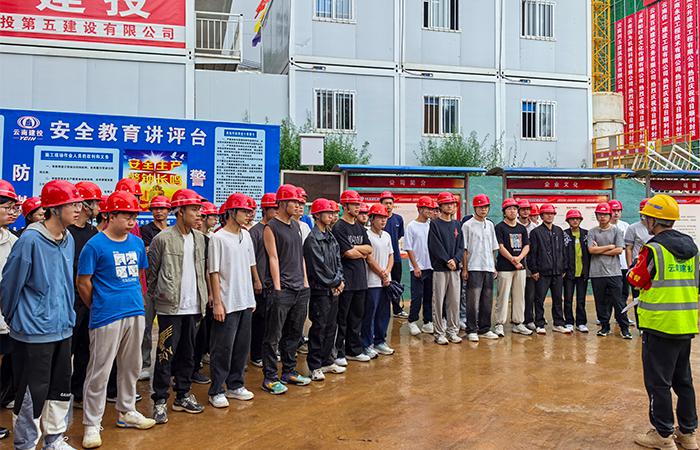 為保障此次校企合作活動(dòng)安全、高效進(jìn)行,項(xiàng)目部提前周密部署,制定了詳細(xì)的參觀流程和安全預(yù)案。進(jìn)入現(xiàn)場前,項(xiàng)目安全員對(duì)全體師生開展嚴(yán)格的入場安全技術(shù)交底,強(qiáng)調(diào)現(xiàn)場注意事項(xiàng),確保師生安全。