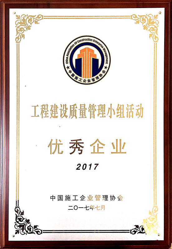公司榮獲2017年度全國(guó)工程建設(shè)QC小組活動(dòng)優(yōu)秀企業(yè)稱(chēng)號(hào)