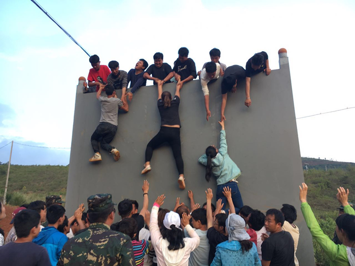 路橋一部:“擼起袖子加油干,勇往直前闖天涯,我們是戰(zhàn)狼隊……”近期,路橋一部在一線項目分三批開展拓展訓(xùn)練,哨關(guān)項目、香麗項目、二線部門共100人參加了活動。在拓展訓(xùn)練中,全體員工被分為紅、藍(lán)兩隊,大家在20分鐘內(nèi)選酋長、選助理、選壯丁、編隊訓(xùn)、唱隊歌、跳隊舞,兩隊隊員高呼口號,并完成了“破冰建隊、信任背摔、穿越電網(wǎng)、愚公移山、流程管理、畢業(yè)墻”等一系列拓展項目。
