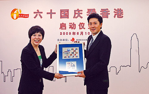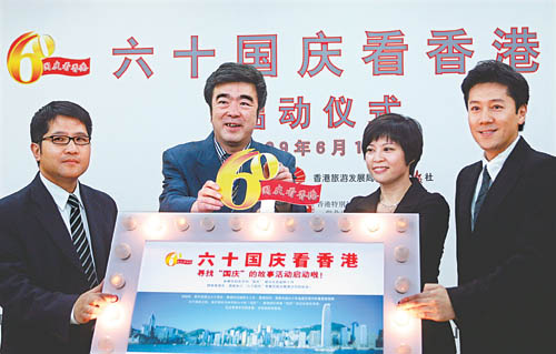6月10日,為慶祝新中國60周年華誕,香港旅游發(fā)展局與中國青年報社聯(lián)合舉辦的“六十國慶看香港”系列活動正式啟動。香港特別行政區(qū)政府駐北京辦事處副主任陳選堯、中國青年報總編輯陳小川、香港旅發(fā)局中國內(nèi)地總監(jiān)葉貞德和著名歌唱演員蔡國慶(從左至右)一同為活動揭幕。