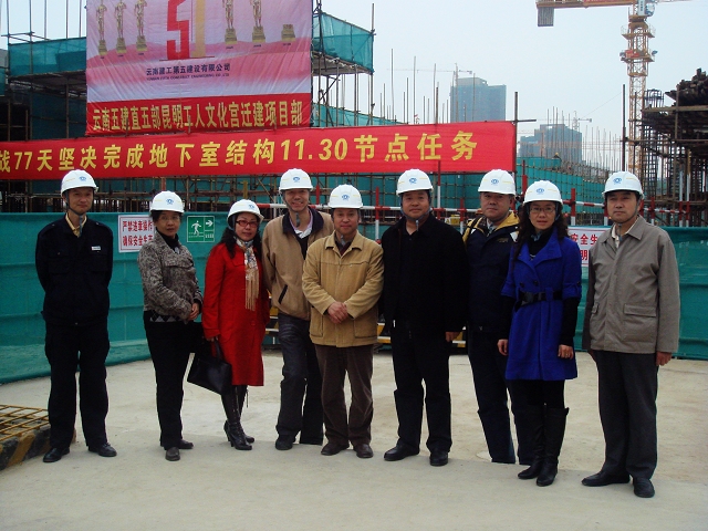 2010年11月27日中午,昆明市盤(pán)龍區(qū)區(qū)委書(shū)記劉云明率團(tuán)到工地檢查工作,檢查期間劉云明對(duì)云南五建從復(fù)工后的工作給予肯定,并安排項(xiàng)目部做好充分準(zhǔn)備工作迎接明年1月的昆明市建設(shè)工地情況檢查。
