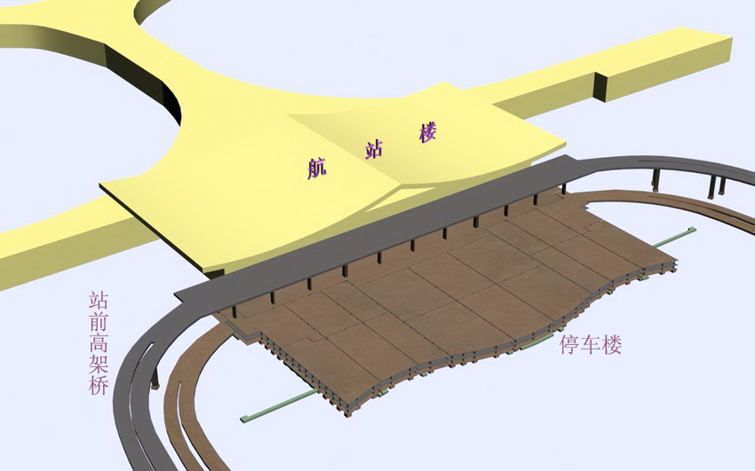 機(jī)場(chǎng)航站樓前停車樓及站前高架橋示意圖