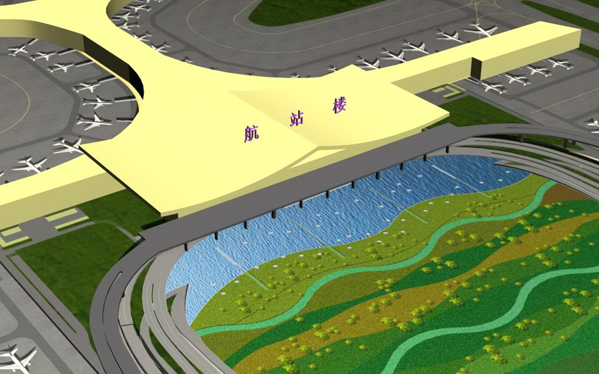 機(jī)場(chǎng)航站樓前停車樓及站前高架橋位置圖