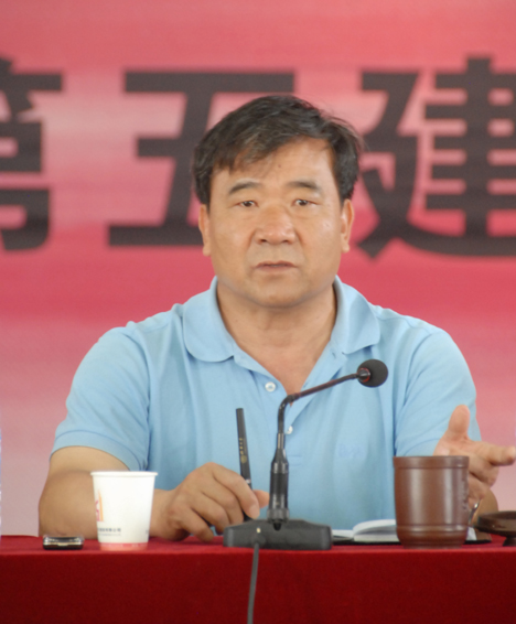 圖為5月10日公司董事長(zhǎng)楊福和在第五直管項(xiàng)目部機(jī)構(gòu)調(diào)整動(dòng)員會(huì)上講話(huà)