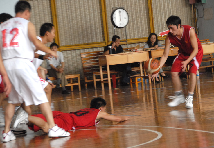 開賽后,他們同心協(xié)力,一度以17比9領(lǐng)先,逼對方換上了主力隊員。雖然此后形勢急轉(zhuǎn)直下,比分被對方反超,但五建上場隊員們?nèi)匀σ愿埃B強拼搏,絕不放棄. 對方由于有10多名隊員輪換,而五建上場的6名隊員基本無法輪換,可是直到終場,你從他們身上看不到一絲一毫的疲憊,看不到一丁一點的懈怠。雖然觀眾不多,雖然吶喊助威之聲稀少,雖然是到了體力極大消耗之后的下半場,他們依然保持高昂的斗志。無論前場后場,他們都步步緊逼,不放過一個機(jī)會、不放棄每個球權(quán),個個全力拼搏,人人都被汗水濕透了全身。雖說最終以幾分之差告負(fù),但是體育的精神,頑強的拼搏,被他們作出了實實在在的演繹。奉獻(xiàn)給觀眾的,是依然精彩的比賽。