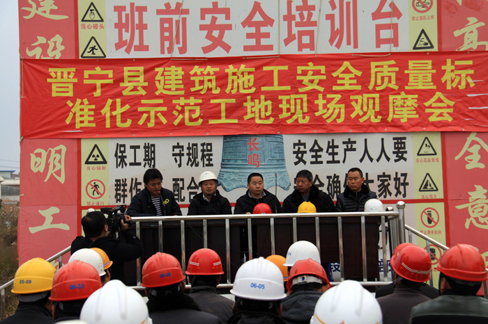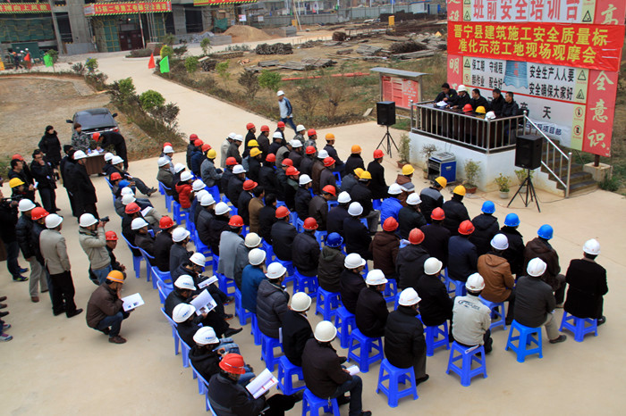 2013年1月17日上午,晉寧縣質檢站組織全縣在建項目的施工單位及相關部門人員到五〇三直管項目部施工的晉寧安企居住區(qū)(第四標段)項目進行現(xiàn)場觀摩。晉寧縣住建系統(tǒng)領導及建設方領導出席了此次觀摩并作了發(fā)言。