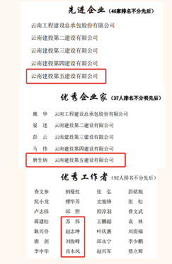 近日,昆明市建筑業(yè)協(xié)會公布2025年度評先創(chuàng)優(yōu)結(jié)果,公司榮膺2025年度昆明市建筑業(yè)“先進企業(yè)”,實現(xiàn)連續(xù)五年榮獲該項榮譽;公司黨委書記、董事長、迪慶公司董事唐生炳獲評昆明市建筑業(yè)“優(yōu)秀企業(yè)家”;同時,蘇偉、趙志坤、劉俊峰、肖本風(fēng)4名職工獲評昆明市建筑業(yè)“優(yōu)秀工作者”。公司將以此次獲獎為新的起點,繼續(xù)秉持“建美好生活 投幸福未來 為企業(yè)謀發(fā)展 為職工謀幸?!钡钠髽I(yè)使命,堅持“以工匠精神為引領(lǐng) 聚焦…