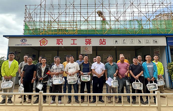 8月15-17日,第七直管項目部工會先后到云南藝術(shù)學(xué)院、輕紡職業(yè)學(xué)院等在建項目開展“工會溫暖進(jìn)萬家”送清涼活動,為堅守項目一線的職工送去小風(fēng)扇、防曬袖套、清涼油、花露水等“清涼大禮包”?;顒又?,直管部工會主席向一線職工講解夏季防暑降溫的小常識,分享預(yù)防蚊蟲叮咬的小妙招,囑咐大家要做好防暑降溫工作,合理安排好高溫工作時間,注意自身健康,謹(jǐn)防高溫中暑。要求項目部要把健康安全放首位,注意食堂衛(wèi)生、菜品?!?