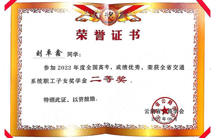 8月25日,云南省公路學(xué)會(huì)2022年度交通系統(tǒng)職工子女獎(jiǎng)學(xué)金評(píng)審結(jié)果發(fā)布,公司申報(bào)的一名職工子女劉卓鑫獲得理科類二等獎(jiǎng),獎(jiǎng)學(xué)金1500元。2022年職工子女獎(jiǎng)學(xué)金理工類申報(bào)評(píng)獎(jiǎng)的起分線為600分,文史類申報(bào)評(píng)獎(jiǎng)的起分線為635分,在被重點(diǎn)院校錄取的交通系統(tǒng)(含外系統(tǒng)公路學(xué)會(huì)團(tuán)體會(huì)員單位)職工子女考生中擇優(yōu)評(píng)獎(jiǎng)。公司職工子女劉卓鑫以669分的高考成績(jī),被復(fù)旦大學(xué)錄取。?劉卓鑫同學(xué)的父母是公司雙職工,…