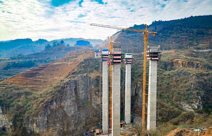 鎮(zhèn)果一級(jí)公路三分部五谷大橋高墩左幅2號(hào)墩順利封頂
