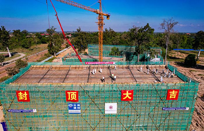 援老撾鐵道職業(yè)技術(shù)學(xué)院項(xiàng)目2#教學(xué)行政樓C區(qū)順利封頂
