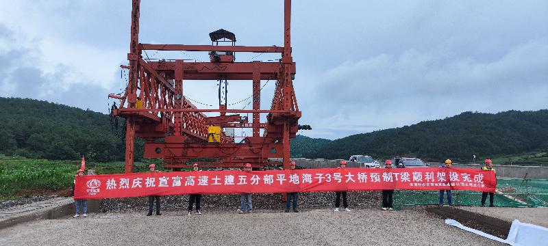 宣富高速公路項(xiàng)目五分部平地海子3號(hào)大橋T梁順利架設(shè)完成