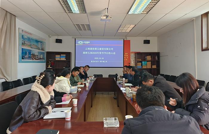 2月5日,路橋五部組織召開2025年春節(jié)后收心會,安排部署近期重點工作,統(tǒng)一思想、凝聚共識,確保今年工作開好局、起好步。直管部班子成員、在昆項目經(jīng)理、各科室負責(zé)人及科員共20人參加會議。會議傳達了集團、公司《關(guān)于做好“春節(jié)”節(jié)后建設(shè)工程項目復(fù)工復(fù)產(chǎn)工作的通知》《關(guān)于印發(fā) 2025 年春節(jié)節(jié)后在建項目復(fù)工復(fù)產(chǎn)方案的通知》等文件精神。會議要求,一是全體職工要明確工作職責(zé)和工作目標(biāo),迅速從節(jié)日氛圍中走出…