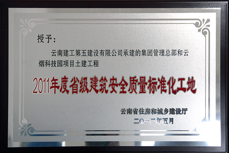 五〇一直管部承建施工的云煙科技園項目土建工程獲“2011年度省級建筑安全質量標準化工地”稱號