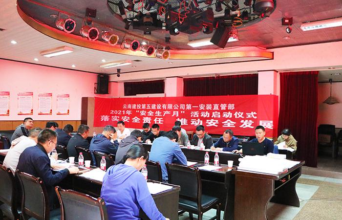 6月11日下午,第一安裝直管項(xiàng)目部2021年度“安全月”活動(dòng)啟動(dòng)儀式在直管部會(huì)議室正式舉行。參加本次啟動(dòng)會(huì)人員包括直管部班子成員、安全總監(jiān)、項(xiàng)目經(jīng)理及各科室負(fù)責(zé)人。