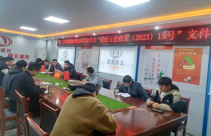 2月21日,由五〇二直管部負(fù)責(zé)施工的鎮(zhèn)雄縣2018年棚戶區(qū)改造工程項(xiàng)目在項(xiàng)目部會議室中集中學(xué)習(xí)《云南建投第五建設(shè)有限公司關(guān)于印發(fā)施工項(xiàng)目目標(biāo)管理責(zé)任書的通知》(建投五建政發(fā)〔2023〕15號)文件。