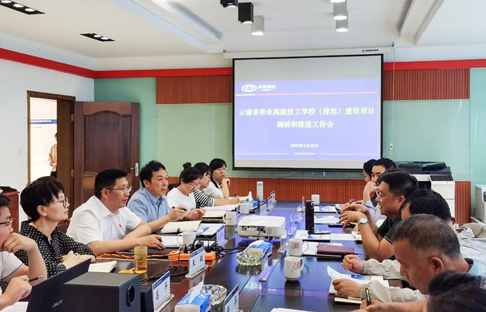 4月25日下午,云南省林業(yè)高級技工學(xué)校黨委副書記、校長張沖平,黨委書記溫紹龍一行到公司五〇五直管部調(diào)研,公司黨委副書記、副董事長、總經(jīng)理付雋蒼熱情接待來訪客人,雙方就云南省林業(yè)高級技工學(xué)校(排危)項目的推進深入交流座談。