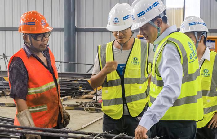 石俊一行通過實地查勘項目施工現(xiàn)場、座談等方式對項目生產(chǎn)推進、安全質(zhì)量、文明施工、成本管控及存在的困難等情況進行了逐一了解并提出要求。