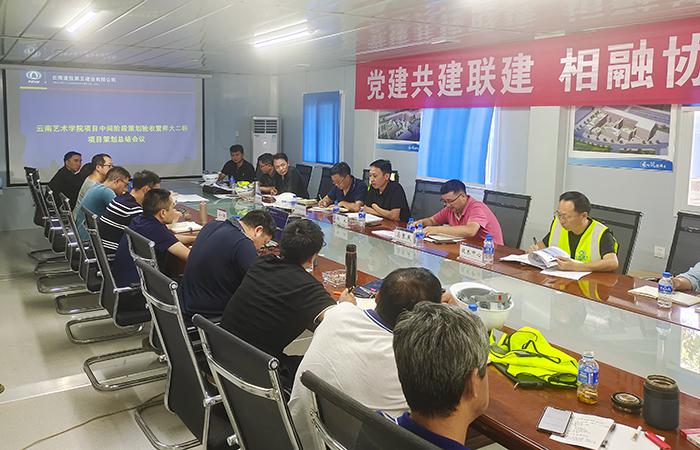 6月27日下午,由公司生產(chǎn)管理部組織公司策劃小組、五〇五、五〇八、第二、第三、第六、第九、第十一直管項(xiàng)目部生產(chǎn)副經(jīng)理和主任工程師,在第七直管項(xiàng)目部、第一安裝直管項(xiàng)目部共同負(fù)責(zé)施工的云南藝術(shù)學(xué)院項(xiàng)目召開(kāi)中間階段策劃驗(yàn)收暨云南師范大學(xué)二標(biāo)項(xiàng)目策劃總結(jié)會(huì)議。公司副總經(jīng)理?xiàng)钣?、副總工程師(主持工作)馬秉慶參會(huì)。