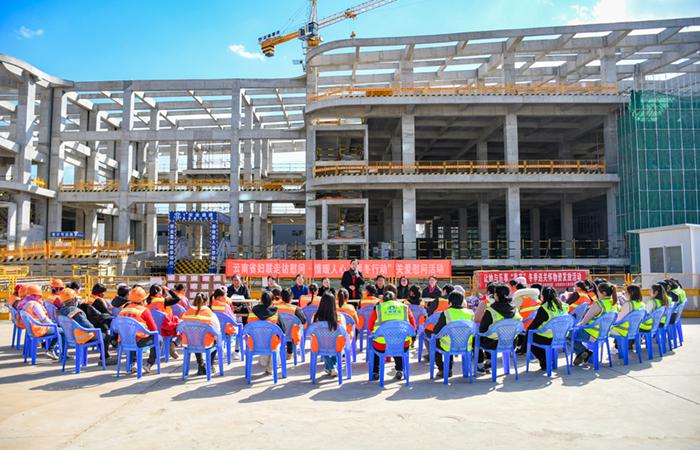 12月28日,云南省婦聯(lián)黨組書記、主席農(nóng)布央宗率隊到五公司負責(zé)施工的婦女兒童發(fā)展中心建設(shè)項目調(diào)研并開展“情暖人心·暖冬行動”慰問活動,為現(xiàn)場60余名女性產(chǎn)業(yè)工人送去節(jié)日關(guān)懷與溫暖。云南省婦聯(lián)黨組成員、副主席陳芳主持活動。