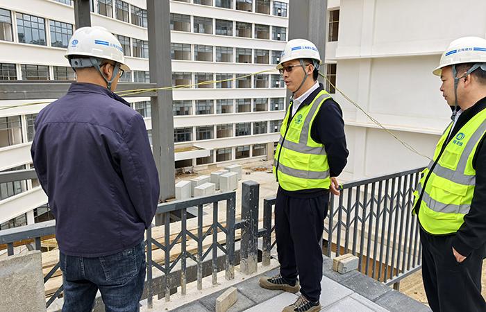 付雋蒼查看現(xiàn)場情況并詳細(xì)了解項(xiàng)目進(jìn)度,對施工現(xiàn)場的質(zhì)量、進(jìn)度、安全及成本管控工作提出要求。