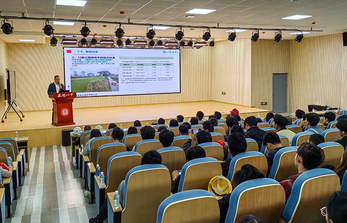 交流座談會上,直管部主任工程師從項目規(guī)劃藍圖、設(shè)計理念、室外綠化景觀設(shè)計,到施工過程中攻克的技術(shù)難題,再到校園風貌最終效果,詳細介紹項目整體情況,為前來參觀的農(nóng)大師生展示了項目建設(shè)每一處細節(jié)。在介紹過程中,主任工程師還特別強調(diào)校園建筑在有限的空間布局、功能分區(qū)上如何滿足現(xiàn)代化教學需求,以及本項目在綠色環(huán)保、可持續(xù)發(fā)展方面的創(chuàng)新舉措,引起了師生的濃厚興趣。