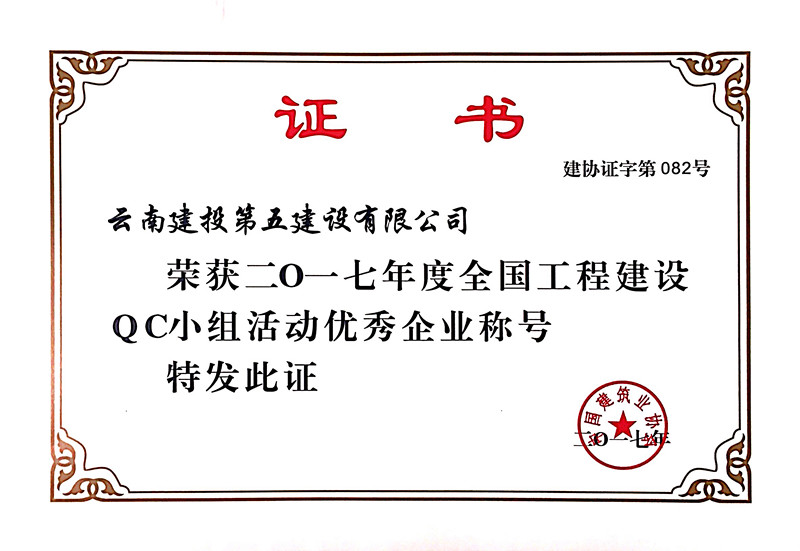 公司榮獲2017年度全國工程建設(shè)QC小組活動優(yōu)秀企業(yè)稱號