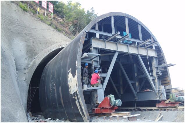6月1日,古那灣2號隧道右洞二襯臺車經(jīng)過10天的組裝,成功安裝完畢。