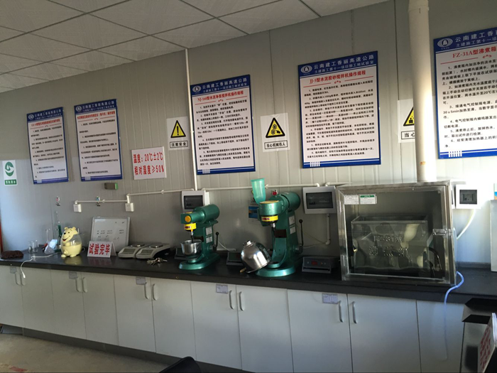 香麗高速第十一項目部試驗室自2015年11月1日開始籌建,12月4日完成所有試驗檢測儀器設備的進場、安裝與調試及標定。試驗室建筑面積450平方米,12個功能室擁有各種試驗儀器104臺(套),人員配置11人,其中試驗工程師2人,試驗檢測員9人,滿足試驗檢測環(huán)境及辦公要求。