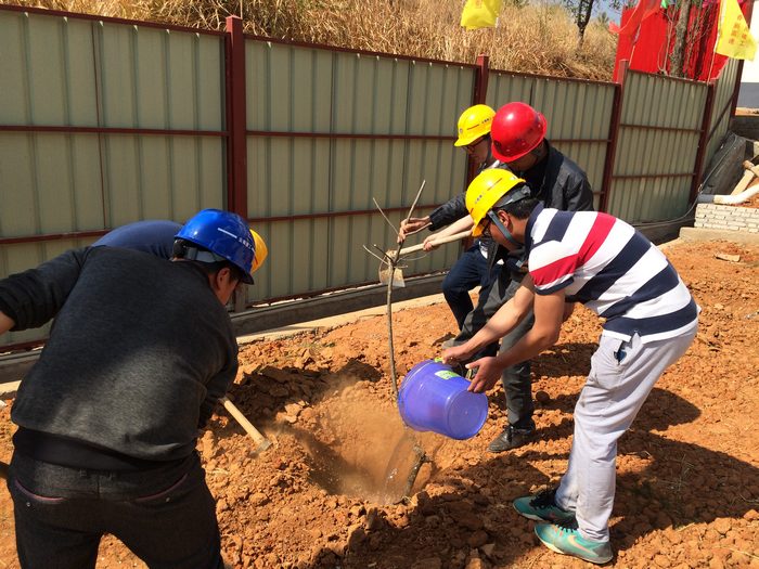 “你挖坑來、我放樹;你埋土來、我澆水”,3月13日,公司香麗項(xiàng)目部三工區(qū)駐地的植樹活動(dòng)正在熱火朝天地進(jìn)行著。