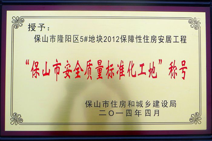 此前,保山市隆陽區(qū)5#地塊項(xiàng)目榮獲“保山市安全質(zhì)量標(biāo)準(zhǔn)化示范工地”的稱號,更進(jìn)一步的提升了公司在保山地區(qū)的企業(yè)形象和社會(huì)影響力。同時(shí)隆陽區(qū)5#地塊也是集團(tuán)各參建公司保山片區(qū)保障性住房工程中唯一申請省標(biāo)準(zhǔn)化示范工地的項(xiàng)目。