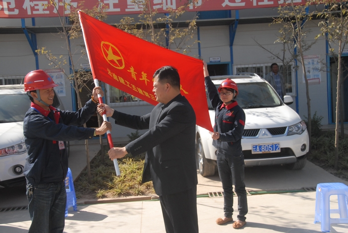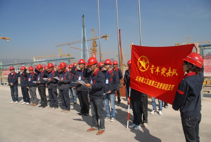 2012年11月23日,第三直管部玉溪公租房項(xiàng)目部青年突擊隊(duì)正式成立,公司黨委書(shū)記李興奎,黨委副書(shū)記、紀(jì)委書(shū)記吳倩等領(lǐng)導(dǎo)到項(xiàng)目部為青年突擊隊(duì)授旗,并要求要著力將這支青年突擊隊(duì)打造成為西南西北八省區(qū)建筑業(yè)中優(yōu)秀的青年突擊隊(duì)。