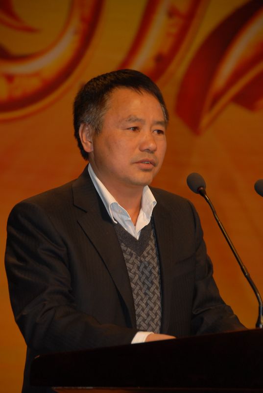 公司董事長(zhǎng)楊福和在會(huì)上發(fā)言