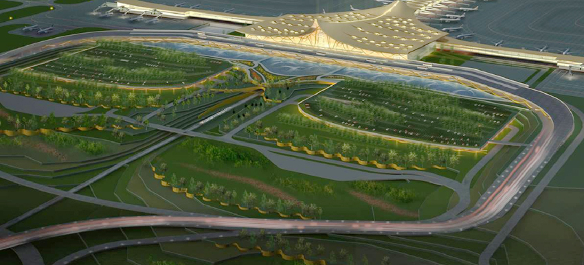 機(jī)場航站樓前停車樓及站前高架橋位置圖