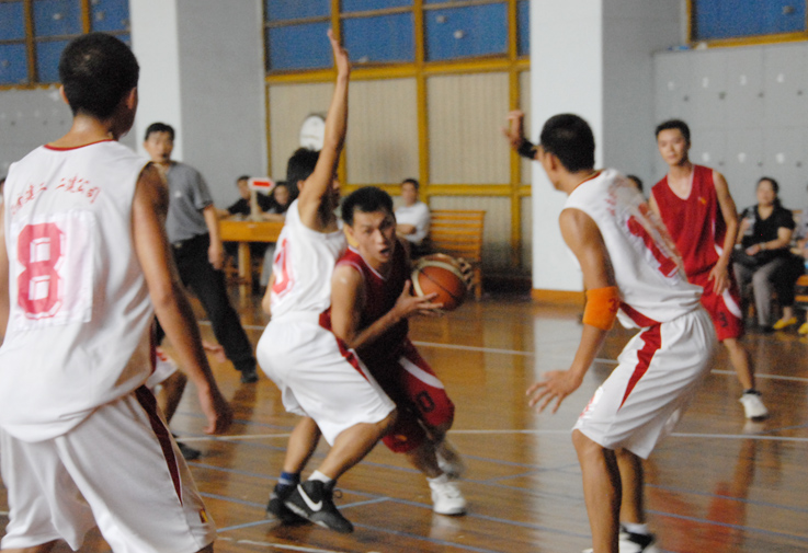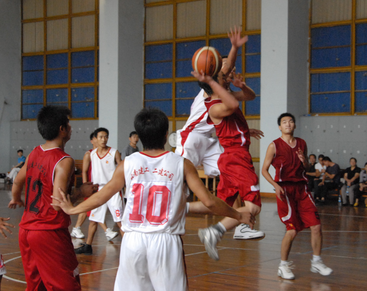 開賽后,他們同心協(xié)力,一度以17比9領(lǐng)先,逼對(duì)方換上了主力隊(duì)員。雖然此后形勢(shì)急轉(zhuǎn)直下,比分被對(duì)方反超,但五建上場(chǎng)隊(duì)員們?nèi)匀σ愿?,頑強(qiáng)拼搏,絕不放棄. 對(duì)方由于有10多名隊(duì)員輪換,而五建上場(chǎng)的6名隊(duì)員基本無(wú)法輪換,可是直到終場(chǎng),你從他們身上看不到一絲一毫的疲憊,看不到一丁一點(diǎn)的懈怠。雖然觀眾不多,雖然吶喊助威之聲稀少,雖然是到了體力極大消耗之后的下半場(chǎng),他們依然保持高昂的斗志。無(wú)論前場(chǎng)后場(chǎng),他們都步步緊逼,不放過一個(gè)機(jī)會(huì)、不放棄每個(gè)球權(quán),個(gè)個(gè)全力拼搏,人人都被汗水濕透了全身。雖說最終以幾分之差告負(fù),但是體育的精神,頑強(qiáng)的拼搏,被他們作出了實(shí)實(shí)在在的演繹。奉獻(xiàn)給觀眾的,是依然精彩的比賽。