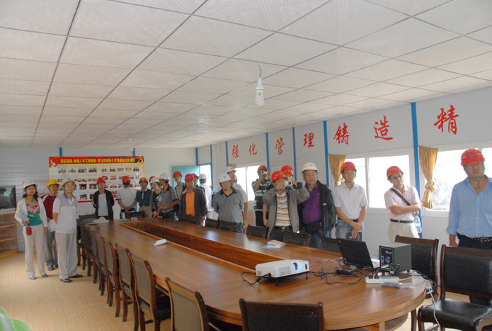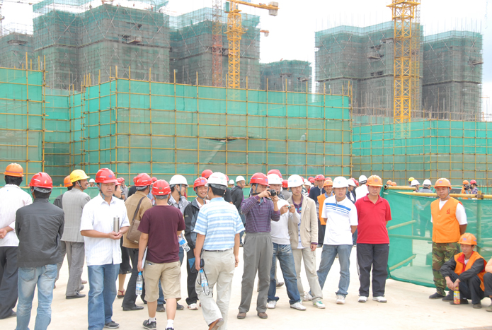 會(huì)后,所有參會(huì)人員參觀了五公司第三城•丹槿園項(xiàng)目現(xiàn)場安全、文明施工管理和班組班前活動(dòng)。