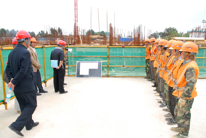 楊濤指出,集團(tuán)公司在這里召開施工現(xiàn)場班組安全建設(shè)啟動(dòng)儀式,是落實(shí)集團(tuán)安全生產(chǎn)、違規(guī)行為專項(xiàng)整治行動(dòng),夯實(shí)集團(tuán)安全管理基礎(chǔ)、實(shí)現(xiàn)集團(tuán)安全生產(chǎn)形勢根本好轉(zhuǎn)的一個(gè)重要舉措。長期以來,集團(tuán)公司對(duì)于集團(tuán)安全質(zhì)量生產(chǎn)標(biāo)準(zhǔn)化工作,更多的是強(qiáng)調(diào)安全防護(hù)設(shè)施的安全標(biāo)準(zhǔn)化、人的行為的標(biāo)準(zhǔn)化。人的本質(zhì)安全一直以來都是集團(tuán)安全管理工作和適度防范的薄弱環(huán)節(jié)。大量安全事故的發(fā)生都是由于人的違章操作及操作人員的安全意識(shí)自我防范能力差而造成的,安全事故死亡人員中,95%是現(xiàn)場農(nóng)民工、一線工作人員。項(xiàng)目部對(duì)于一線工作人員更多的是以勞務(wù)承包的經(jīng)濟(jì)合同關(guān)系,對(duì)于安全交底、操作班組的安全活動(dòng)基本未按要求進(jìn)行,更多的是走形式、敷衍了事。部分項(xiàng)目甚至每天都不對(duì)操作人員進(jìn)行簡單的安全交底就讓操作人員進(jìn)行上崗作業(yè),項(xiàng)目部基本上不掌握現(xiàn)場操作人員的人員數(shù)量、基本情況、安全狀況,整個(gè)安全班組施工現(xiàn)場安全狀況處于失控狀態(tài),項(xiàng)目部對(duì)于安全施工班組的管理只能是聽天由命、憑運(yùn)氣管理,集團(tuán)施工現(xiàn)場安全管理工作令人擔(dān)憂。為了徹底改變現(xiàn)狀,在大力推行施工現(xiàn)場安全防護(hù)設(shè)施標(biāo)準(zhǔn)化工地的創(chuàng)建做好物的本質(zhì)安全的同時(shí),徹底扭轉(zhuǎn)集團(tuán)安全生產(chǎn)的被動(dòng)局面,真正從人的行為的標(biāo)準(zhǔn)化管理做到人的本質(zhì)安全,把現(xiàn)場一線操作人員、操作班組的安全建設(shè)工作放在集團(tuán)安全管理工作的重要位置,把農(nóng)民工納入集團(tuán)安全生產(chǎn)工作的第四層次進(jìn)行管理,牢固樹立圍墻之內(nèi)是一家的安全管理理念,通過在施工現(xiàn)場扎實(shí)開展農(nóng)民工夜校培訓(xùn),規(guī)范集團(tuán)施工現(xiàn)場操作班組安全活動(dòng),進(jìn)一步推動(dòng)集團(tuán)施工現(xiàn)場班組安全建設(shè),使每一個(gè)項(xiàng)目每一個(gè)班組上班之前都要做到有一定時(shí)間的班前安全教育活動(dòng)。