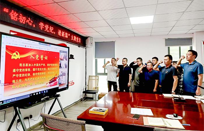 6月28日下午,第七直管項(xiàng)目部黨支部開展“銘初心 學(xué)黨紀(jì) 譜新篇”及“唱紅歌 感黨恩”慶“七一”系列活動(dòng)。活動(dòng)集中學(xué)習(xí)了習(xí)近平總書記關(guān)于安全生產(chǎn)重要論述中的“十句硬話”“六大要點(diǎn)”。黨支部書記帶領(lǐng)大家共同學(xué)習(xí)了題為《守紀(jì)律 講規(guī)矩 做合格黨員》黨課,進(jìn)一步引導(dǎo)支部黨員、領(lǐng)導(dǎo)干部深入學(xué)習(xí)領(lǐng)悟《中國(guó)共產(chǎn)黨紀(jì)律處分條例》?!拔抑驹讣尤胫袊?guó)共產(chǎn)黨,擁護(hù)黨的綱領(lǐng),遵守黨的章程……”面向鮮艷的黨旗,全體黨員在…