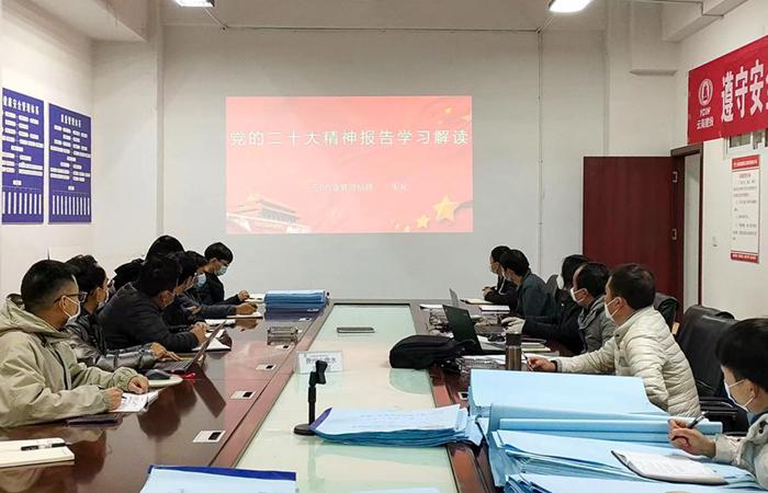 12月16日,五〇八直管項目部經理到六盤水鳳凰薹項目宣講黨的二十大精神,項目部全體人員16人參加。宣講緊緊圍繞黨的二十大會議基本情況、會議主題和重大意義、十九屆中央委員會的工作報告全文組織學習。直管部經理在學習中指出,黨的二十大是在全黨全國各族人民邁上全面建設社會主義現代化國家新征程、向第二個百年奮斗目標進軍的關鍵時刻召開的一次十分重要的大會,具有承前啟后、繼往開來的里程碑意義。要深入學習領會報告…